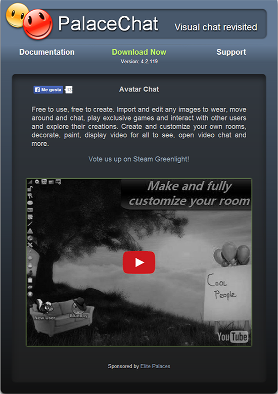 This is the main web site for the PalaceChat4 software, here you can download the latest public software version, View the PalaceChat4 documentation and visit the software forums.